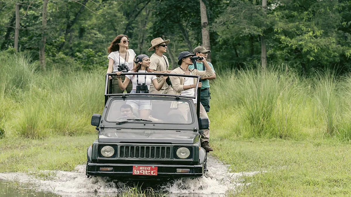 The journey then takes you to Chitwan for a premium jungle escape. Stay at the luxurious Barahi Jungle Lodge and enjoy a full Chitwan wildlife safari tour. Activities include jeep safari, canoe ride, jungle walks, bird watching, and cultural Tharu performances. Inside Chitwan National Park, you have the chance to spot rare wildlife like the one-horned rhinoceros and Bengal tiger, making it one of the best wildlife safari experiences in Nepal.