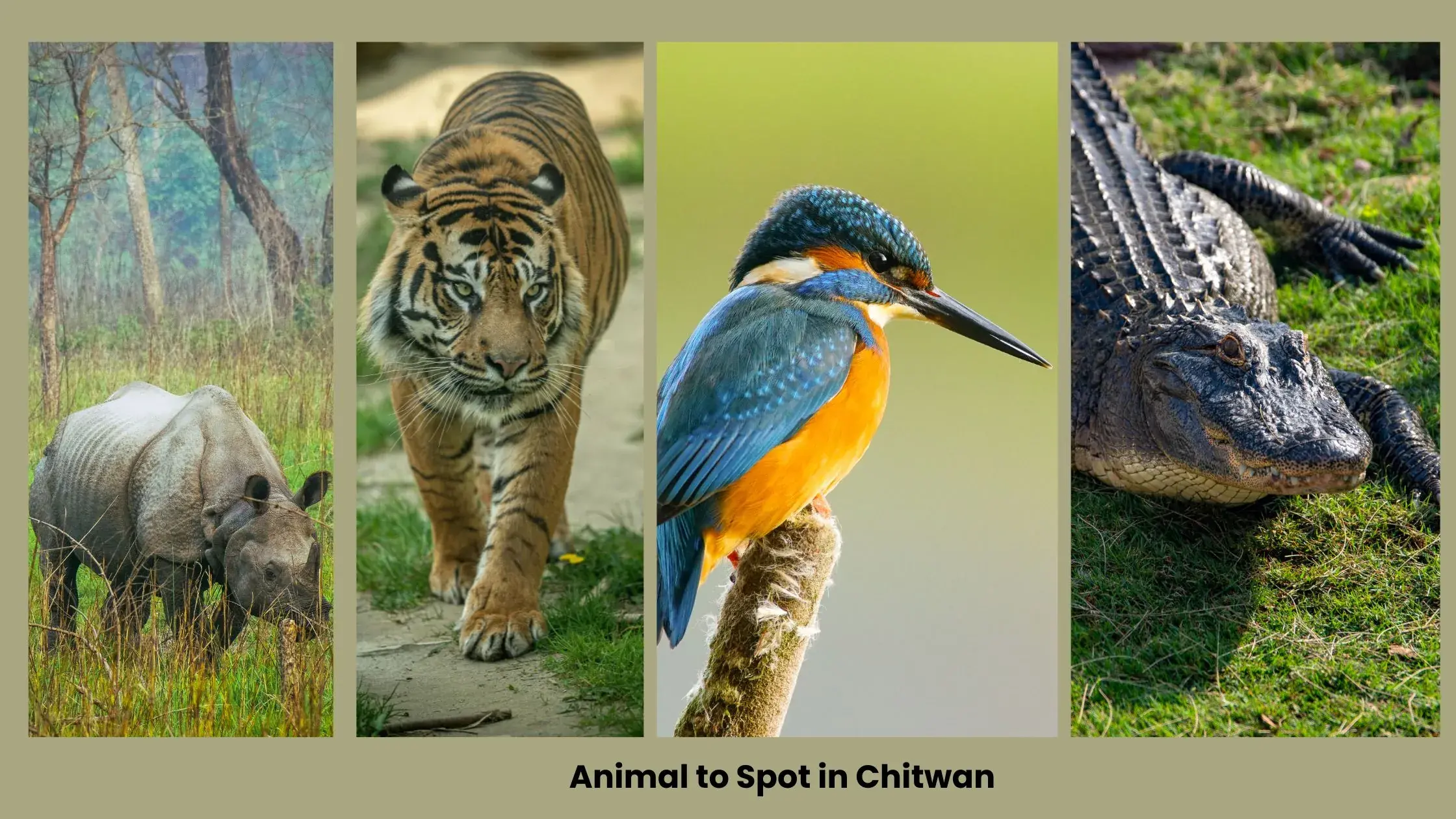 A Chitwan Jungle Safari is one of Nepal’s most searched wildlife activities, famous for its rich biodiversity and high chances of spotting iconic Himalayan jungle animals. The star highlight for most travelers is the one-horned rhinoceros, with Chitwan National Park being home to one of the world’s largest protected rhino populations. Safari-goers may also spot the Royal Bengal tiger, a major attraction for wildlife photographers and nature lovers. Although tiger sightings are never guaranteed, Chitwan is known for increasing visibility in recent years. Another major wildlife attraction is the Asian wild elephant, often seen during river crossings or deep-forest Jeep safaris. The rivers of Chitwan are home to two types of crocodiles: the Marsh Mugger crocodile and the rare Gharial, famous for its long, slender snout. Travelers also see several species of deer such as spotted deer, sambar deer, and hog deer. Chitwan is also a top bird-watching destination with over 500 bird species, including kingfishers, hornbills, parakeets, eagles, and migratory water birds. The jungle offers chances to view sloth bears, wild boars, monkeys, and occasionally leopards. During canoe rides, visitors enjoy close views of crocodiles sunbathing and river birds feeding along the banks. A luxury Chitwan safari provides the best opportunity to see Nepal’s most iconic wildlife in its natural habitat, guided by expert naturalists who help identify animal tracks, sounds, and movements throughout the jungle.